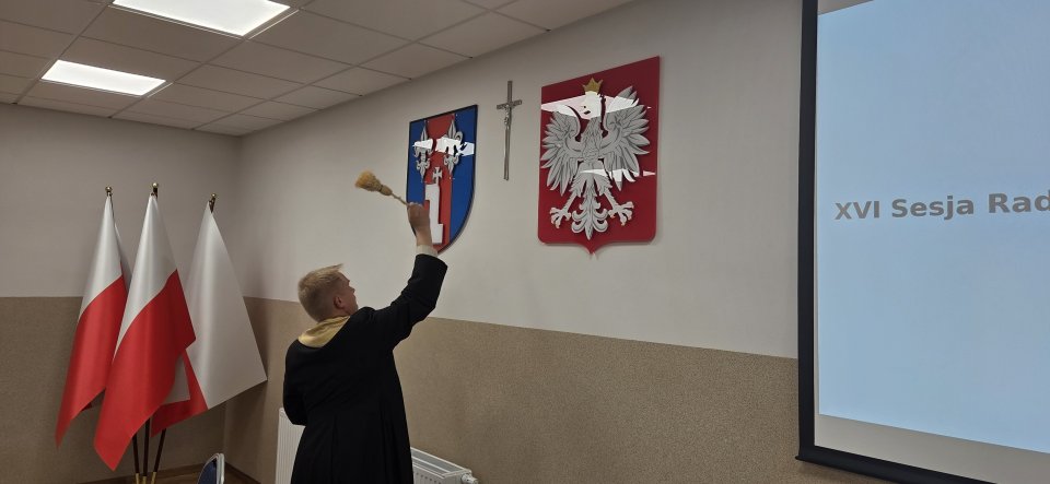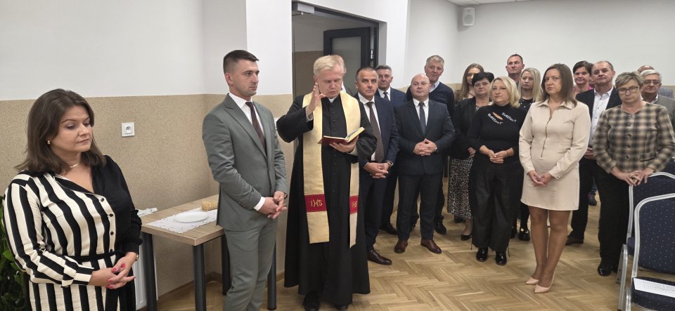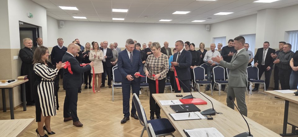 Przed rozpoczęciem XVI Sesji Rady Gminy Goszczanow w dniu 30 września 2025 r. dokonano poświęcenia oraz symbolicznego otwarcia nowej sali obrad Rady Gminy.